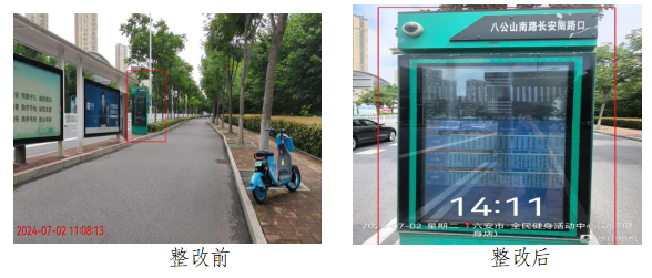 2.八公山南路与长安南路交口西南角,八公山南路长安南路口公交站亭显示屏缺亮。(任务号2024070211555981,责任单位:市交通局)