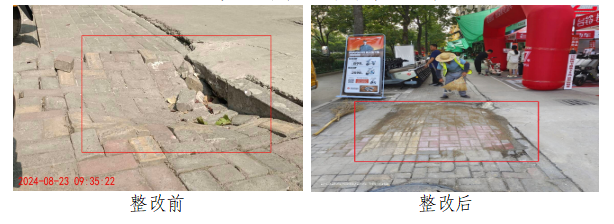 3.横排头路与龙井沟路交口西北角,人行道路面塌陷。(任务号2024082309571596,责任单位:市市政工程处)