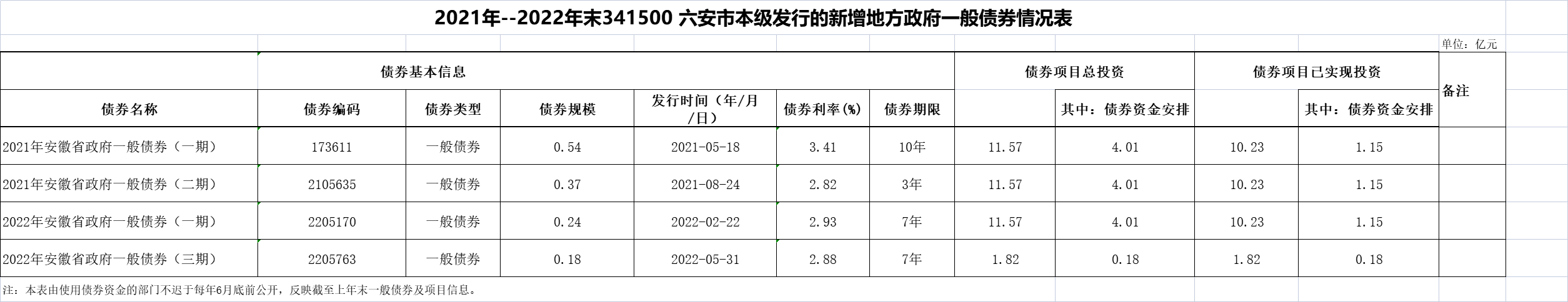 六安市本级2023年政府债券存续期信息公开
