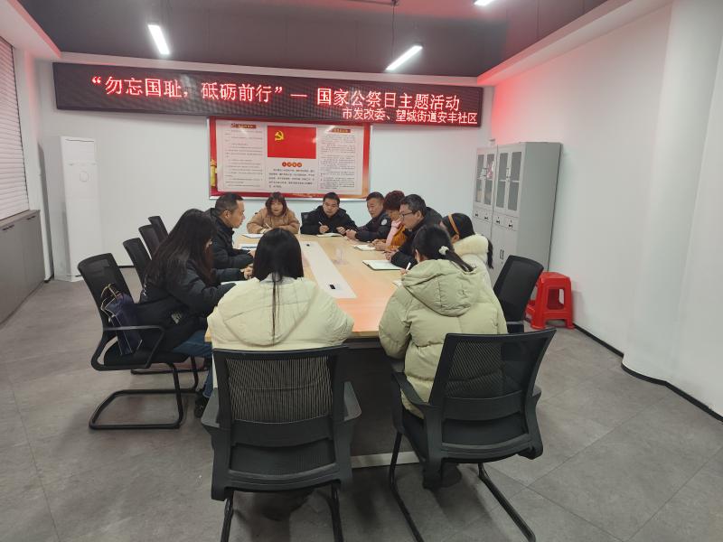 12月14日,市发改委、安丰社区联合开展“勿忘国耻,砥砺前行”国家公祭日活动,市发改委机关支部党员及社区党支部委员参加。会上缅怀抗战先烈,激发爱国热情,大家纷纷表示要铭记历史,珍爱和平,为实现中华民族伟大复兴砥砺前行。