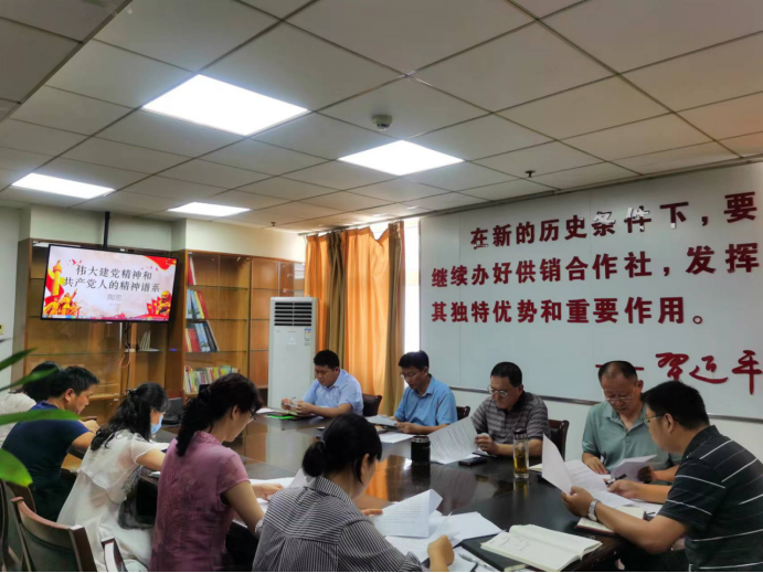 讲一堂主题党课。为庆祝中国共产党成立101周年,7月1日上午,市供销社党组书记陶忠为全体党员干部讲授了一堂题为《伟大建党精神和共产党人的精神谱系》的专题党课。陶主任结合自身知识积累、理解体会,引经据典,阐述了伟大建党精神是中国共产党的精神之源,伟大的事业发展需要伟大的精神铸魂,加强党性教育,是党员干部立身、立业、立言、立德的基石,要将伟大建党精神融入供销日常工作当中,在供销服务工作中发挥先锋模范作用。