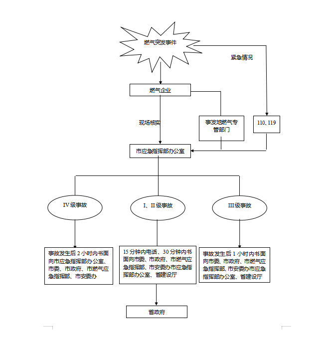 5. 现场指挥。启动Ⅰ、Ⅱ、Ⅲ级响应后,成立市现场指挥部,组织、指挥和协调现场处置工作。启动Ⅳ级响应后,不成立市现场指挥部,由属地政府和城镇燃气企业按照相关应急预案自行处置并上报处置情况。
