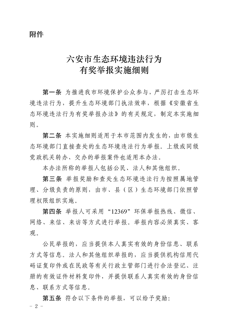 六安市生态环境违法行为有奖举报实施细则(征求意见稿)
