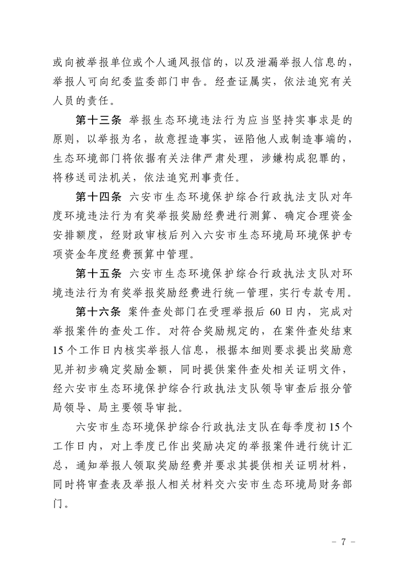 关于《六安市生态环境违法行为有奖举报办法实施细则》起草说明
