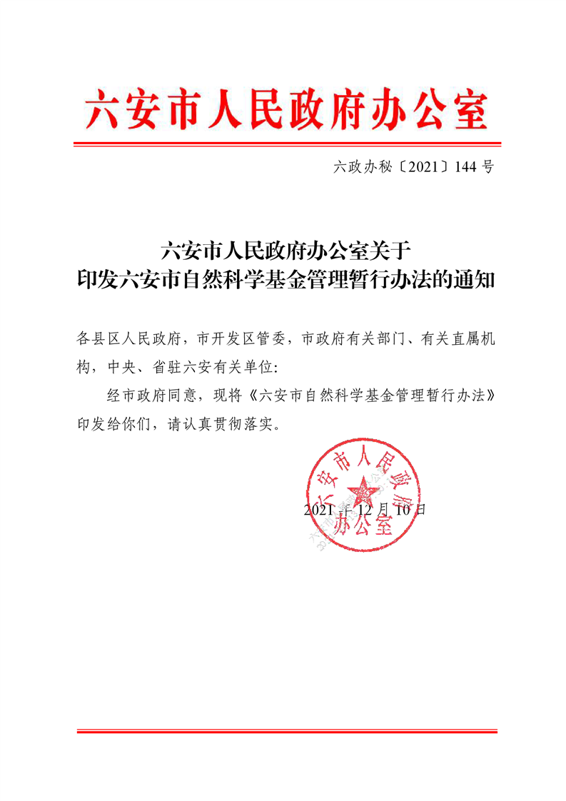 六安市自然科学基金管理暂行办法(征求意见稿)