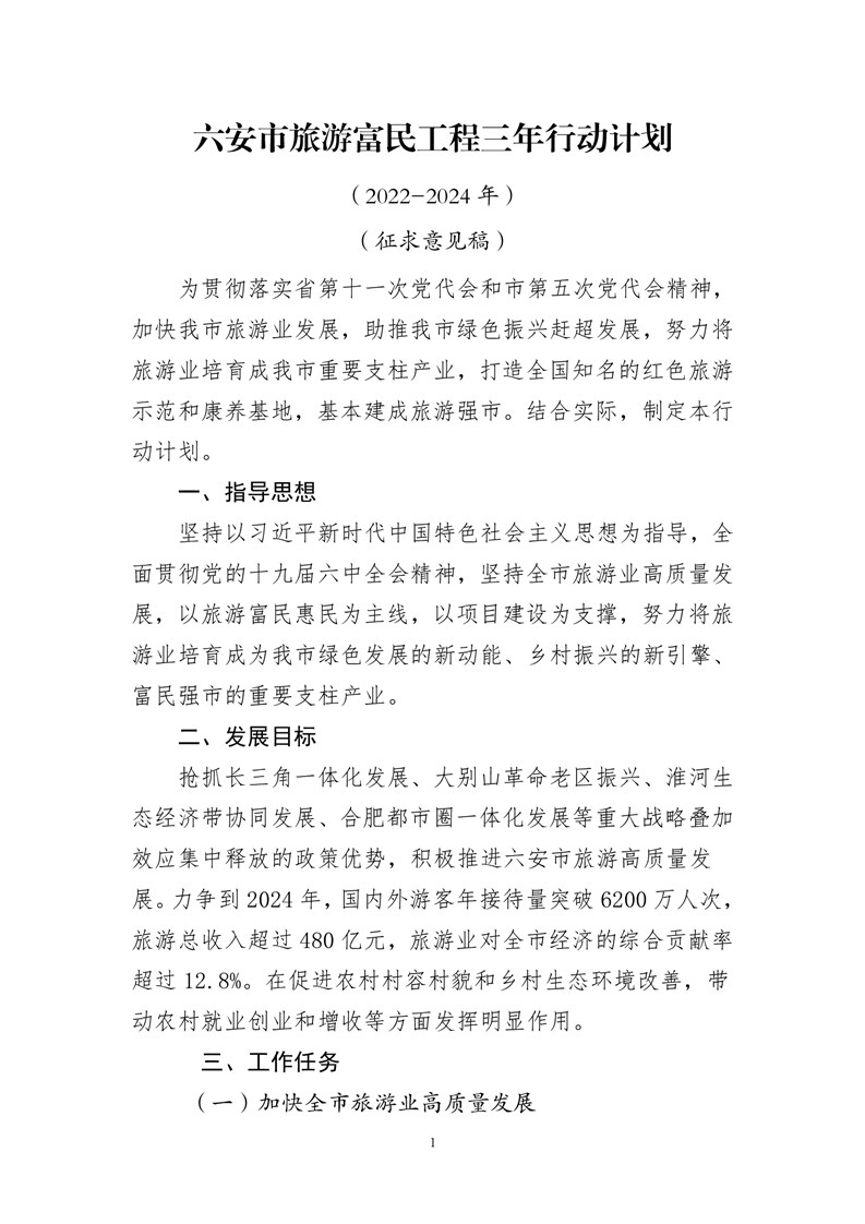 (一)《六安市旅游富民工程三年行动计划(2022-2024年)》