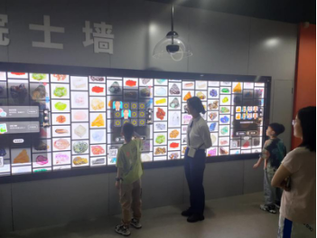 青少年们在市科技馆的院士墙前,聆听讲解员述说老一辈科学家们如何冒着生命危险,毅然回到新中国帮助祖国建设的事迹,并通过互动操作了解科学家们为实现新时代中国特色社会主义作出的贡献。