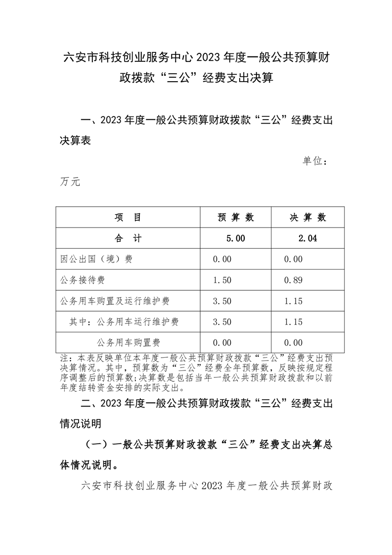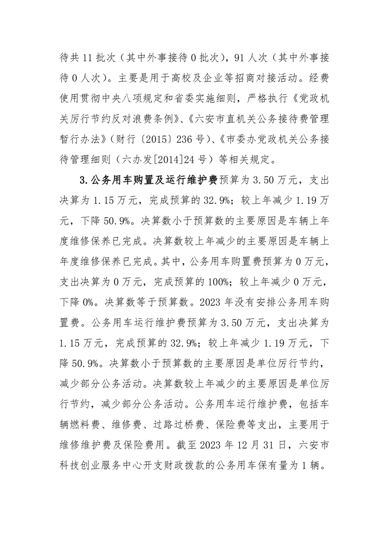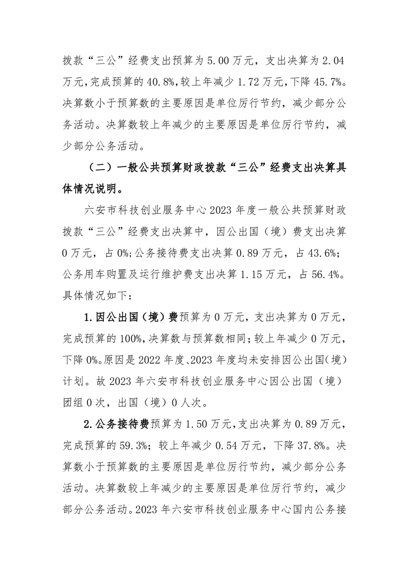 六安市科技创业服务中心2023年度一般公共预算财政拨款“三公”经费支出决算情况说明