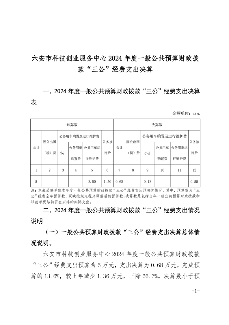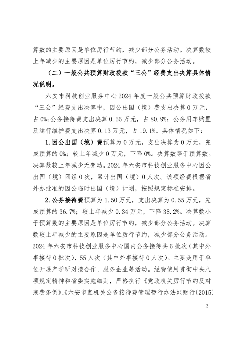 六安市科技创业服务中心2024年度一般公共预算财政拨款“三公”经费支出决算情况说明