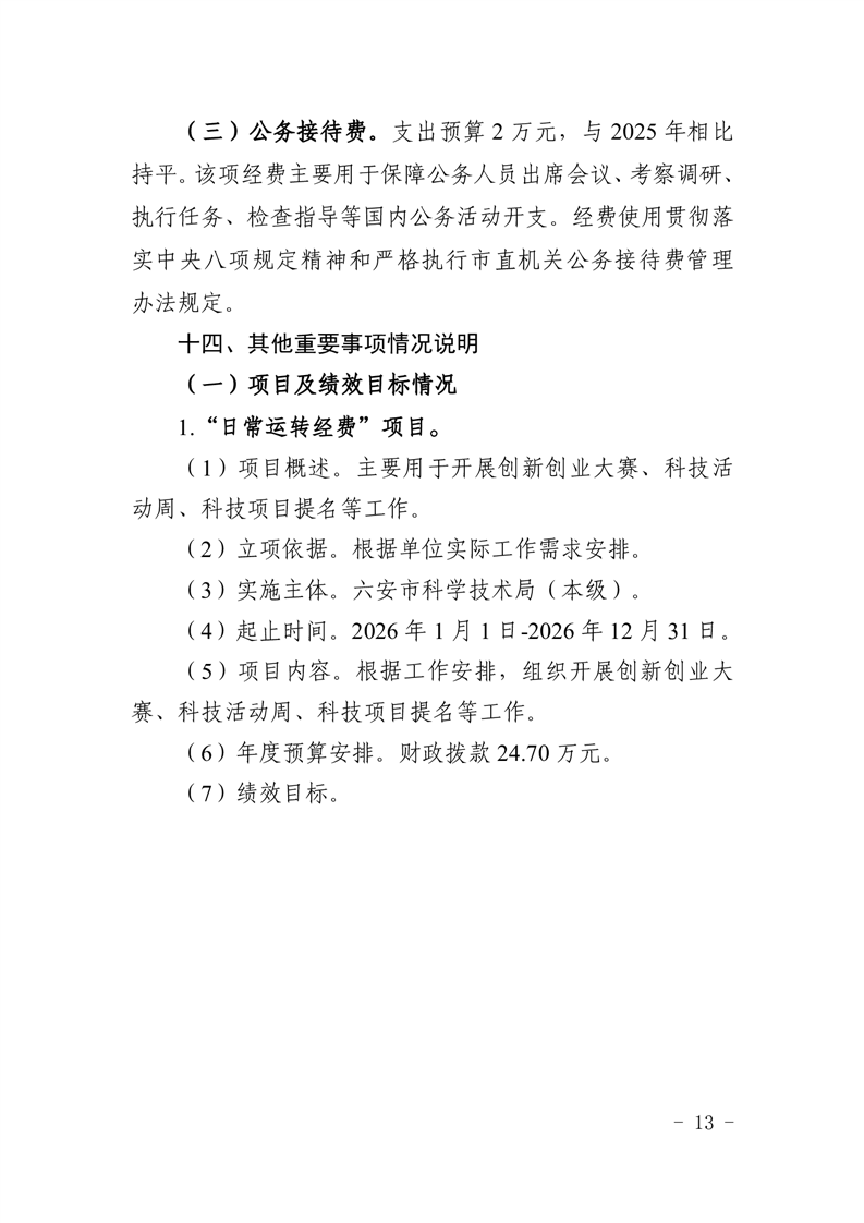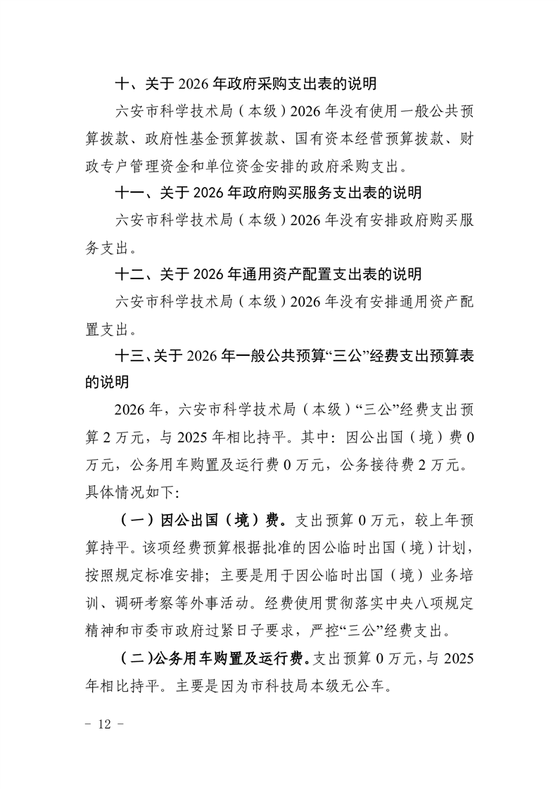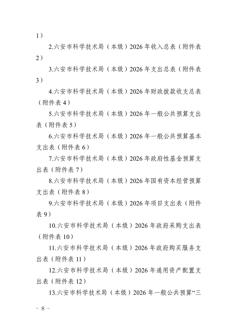 六安市科学技术局(本级)2026年单位预算公开