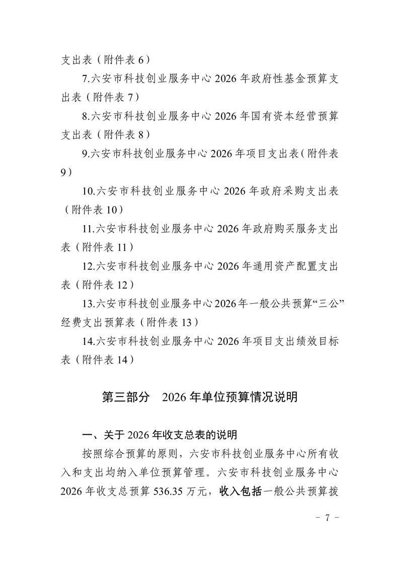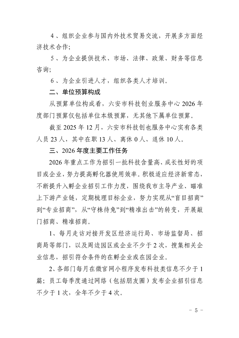 六安市科技创业服务中心2026年单位预算公开