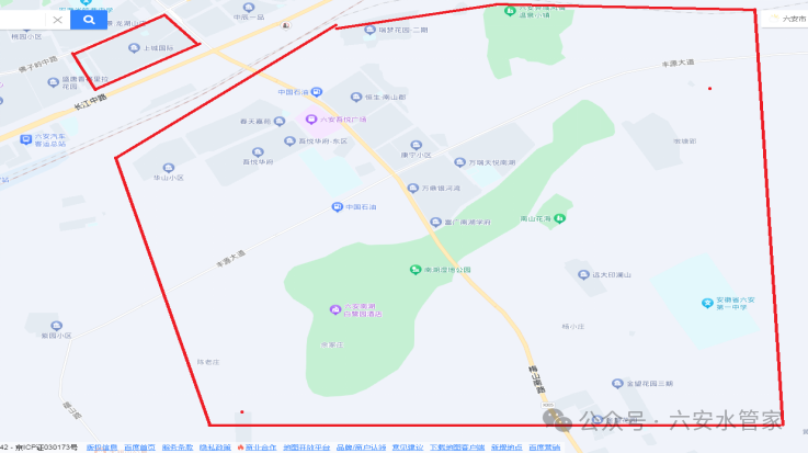 影响范围:为最大限度不影响居民用户长时间无水,计划分两阶段施工。届时地藏寺、十二中及周边用户、世纪金星、上城国际。南山供水范围小区:春天嘉园二期、华山小区、吾悦广场一期,二期、华好家园、天悦南湖、印象南湖、瑞梦花园二期、团结小区、六安一中小区停水。