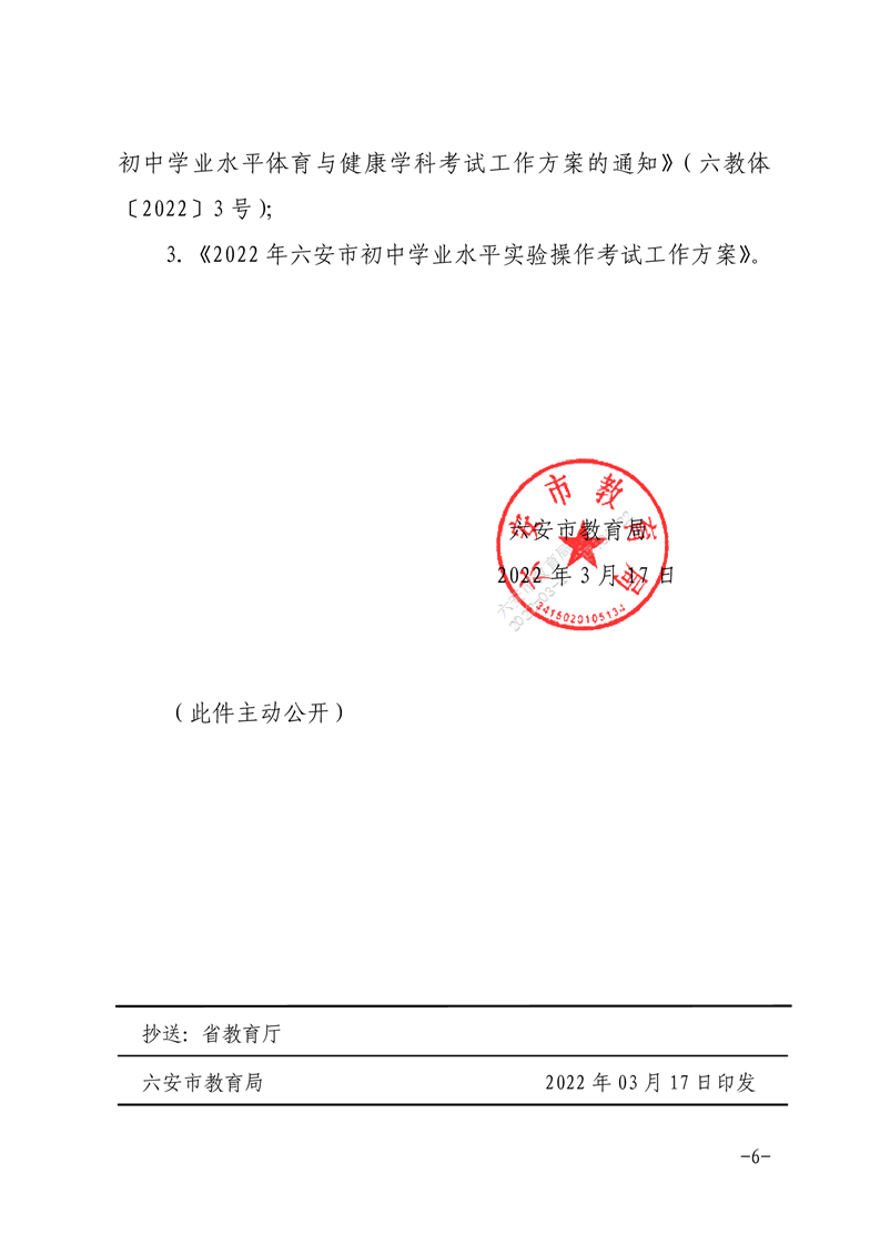 六安市教育局关于切实做好2022年初中学业水平考试暨高中阶段学校考试招生工作的通知.pdf