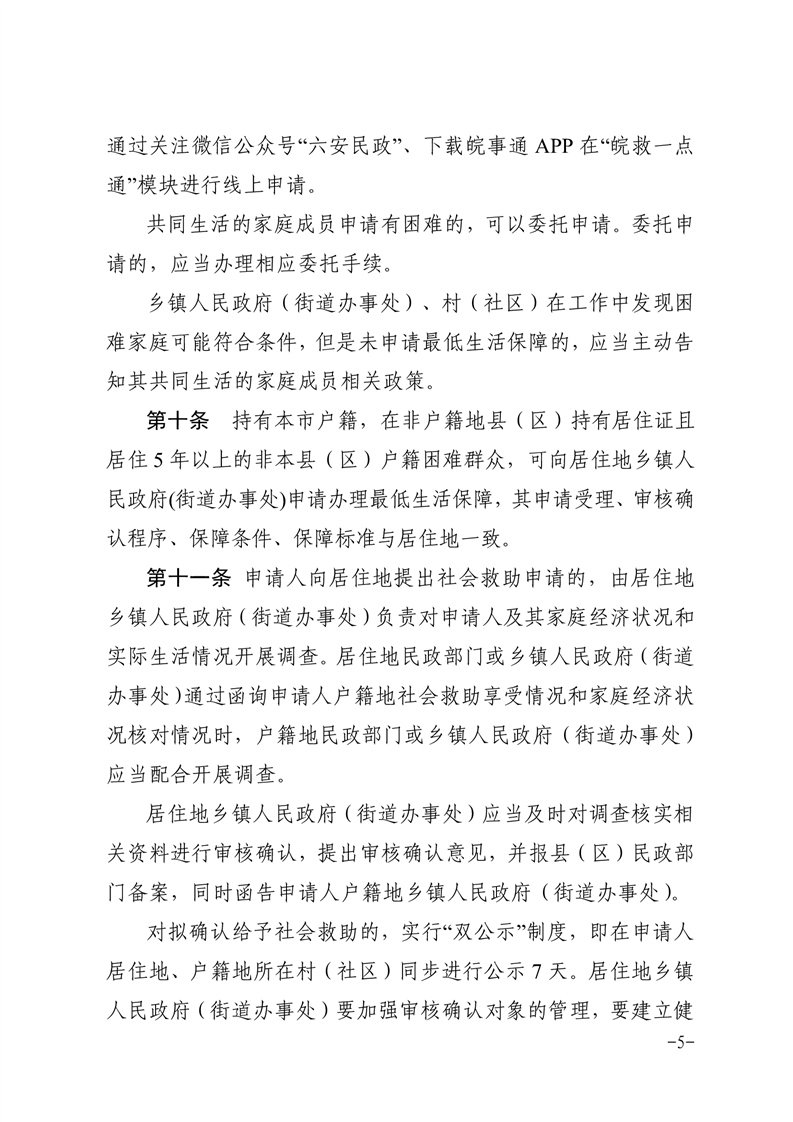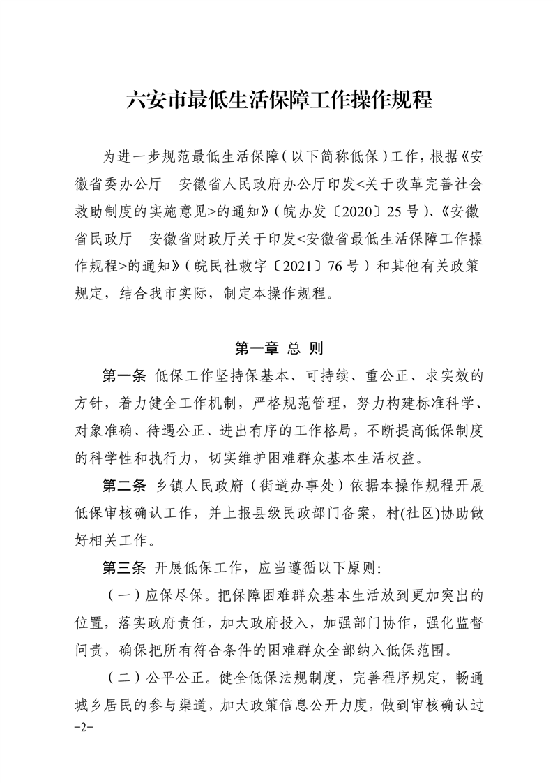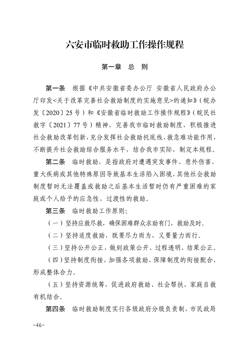 六安市人民政府办公室关于印发《六安市最低生活保障工作操作规程》《六安市特困人员认定办法》《六安市临时救助工作操作规程》的通知