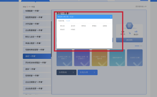 选择办事区域(县级)