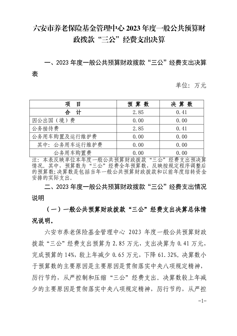 六安市养老保险基金管理中心2023年度“三公”经费决算公开