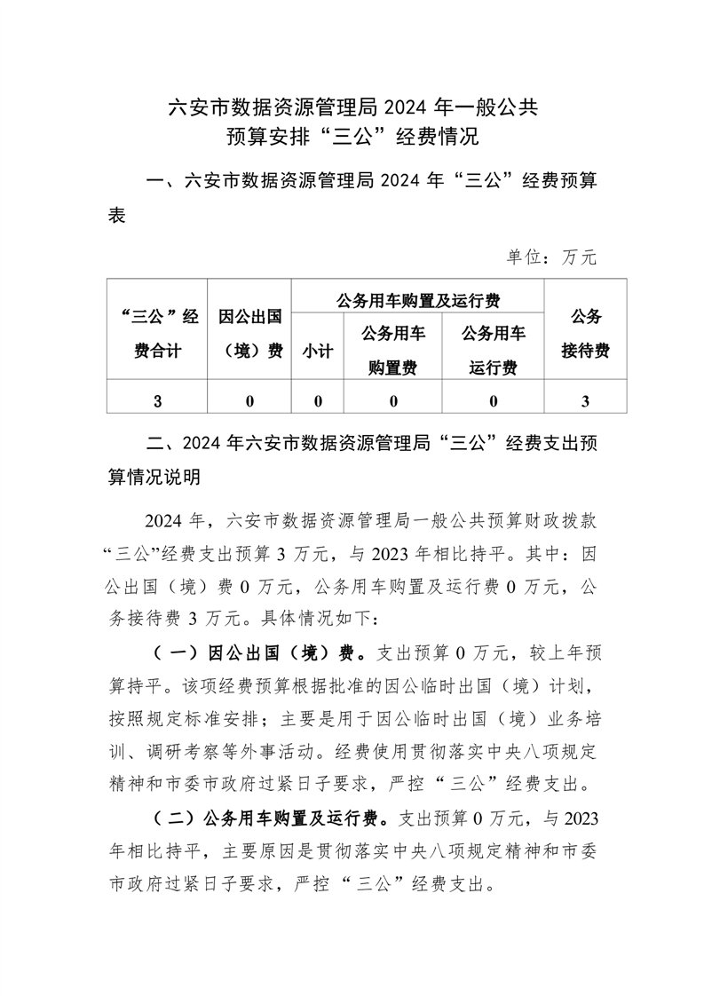 六安市数据资源管理局2024年一般公共预算安排“三公”经费情况