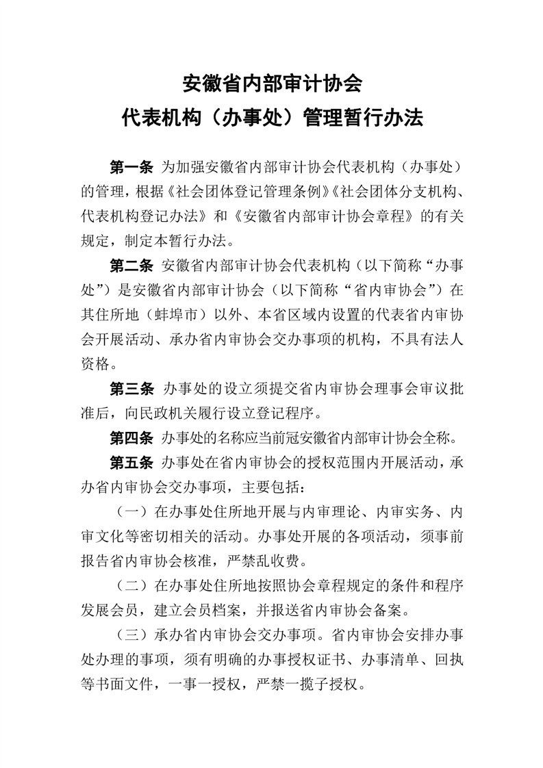 安徽省内部审计协会代表机构(办事处)管理暂行办法