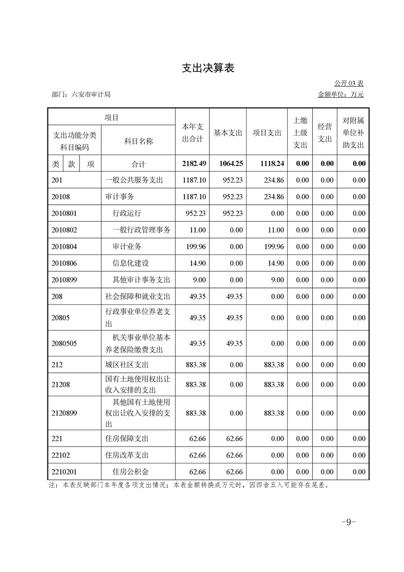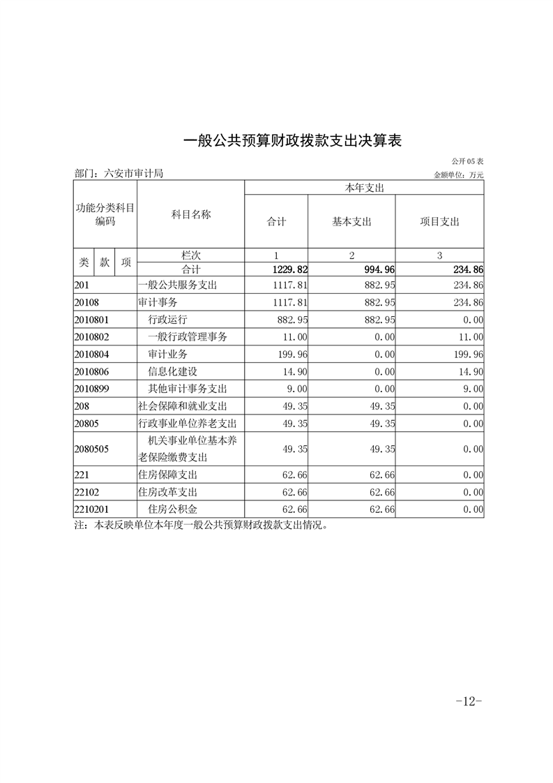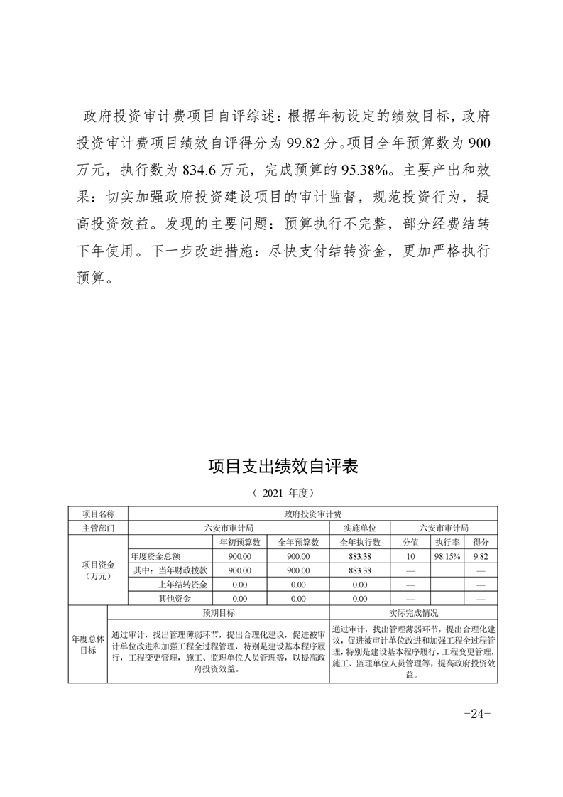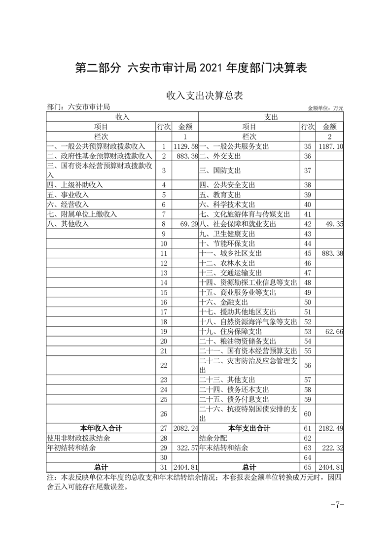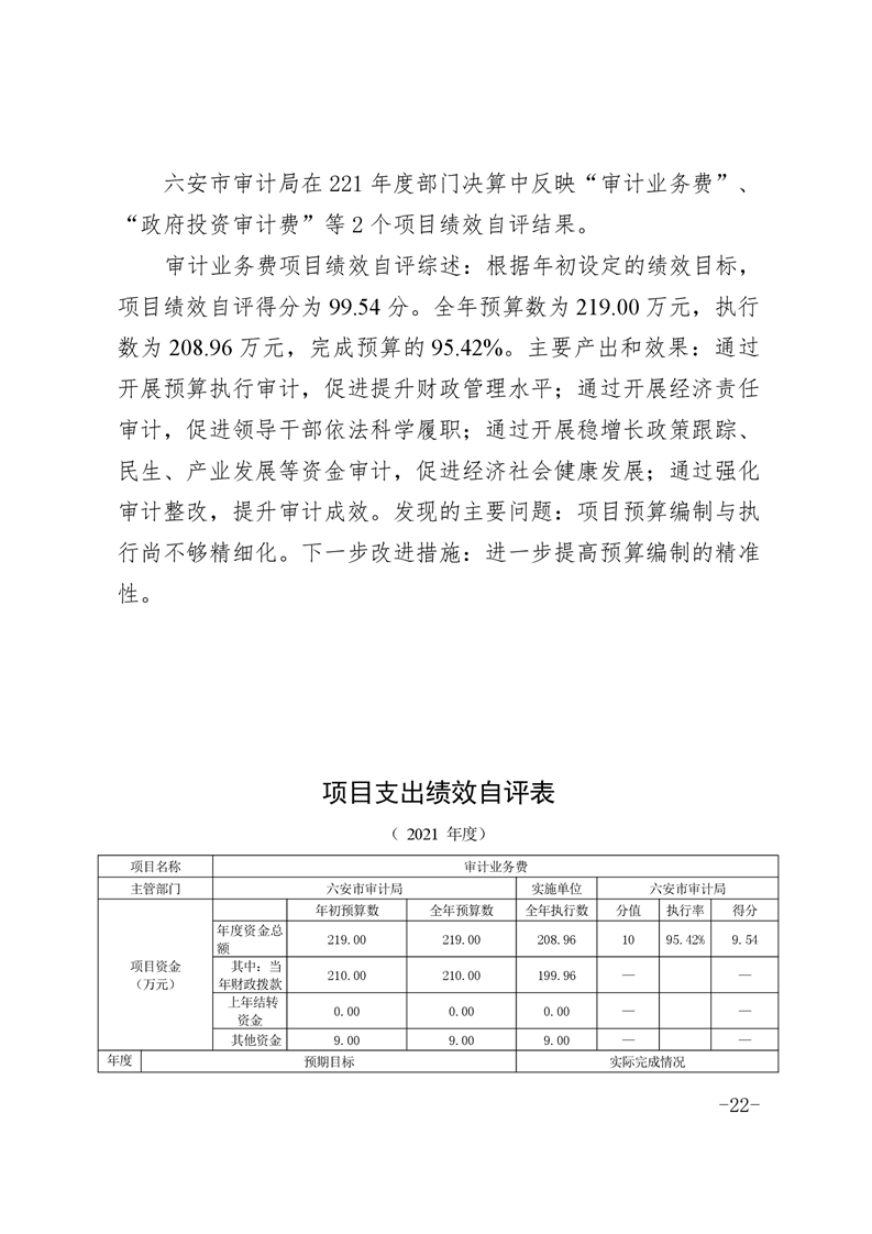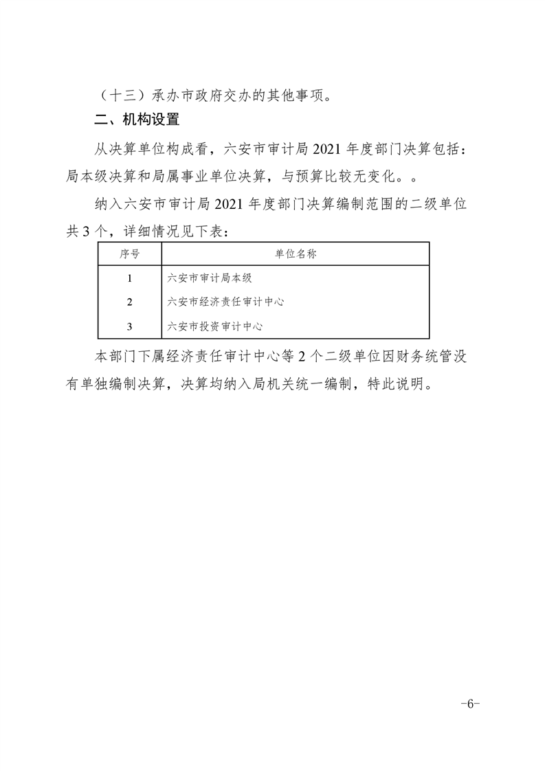六安市审计局2021年部门决算