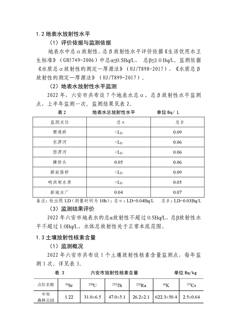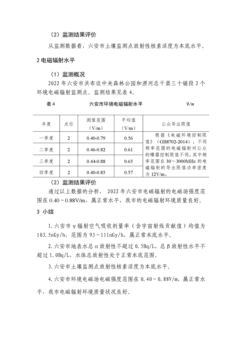 2022年六安市辐射环境质量公报