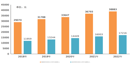 全年城镇常住居民人均可支配收入38883元,比上年增长5.7%;城镇居民人均消费性支出20369元,增长4%,其中食品烟酒支出6873元,增长4.3%,衣着支出增长1.4%,交通通信支出增长6.2%,教育文化娱乐支出增长3.8%;城镇居民恩格尔系数为33.7%,比上年提升0.1个百分点。