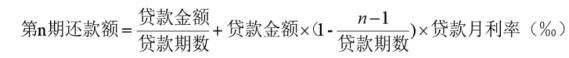 (二)等额本金还款方式,每月等额偿还贷款本金,贷款利息逐月递减,计算公式为: