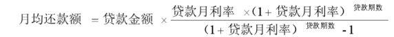 (一)等额本息还款方式,每月以相等的额度偿还本息,计算公式为: