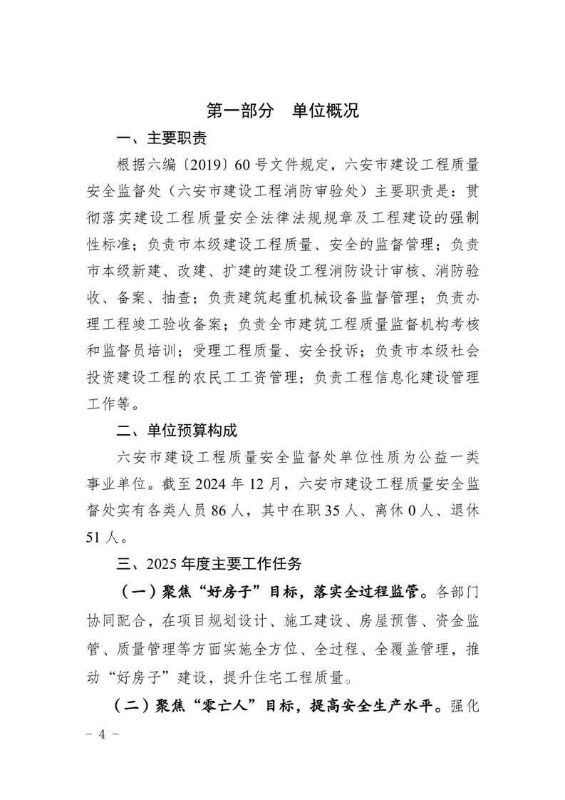 六安市建设工程质量安全监督处2025年单位预算