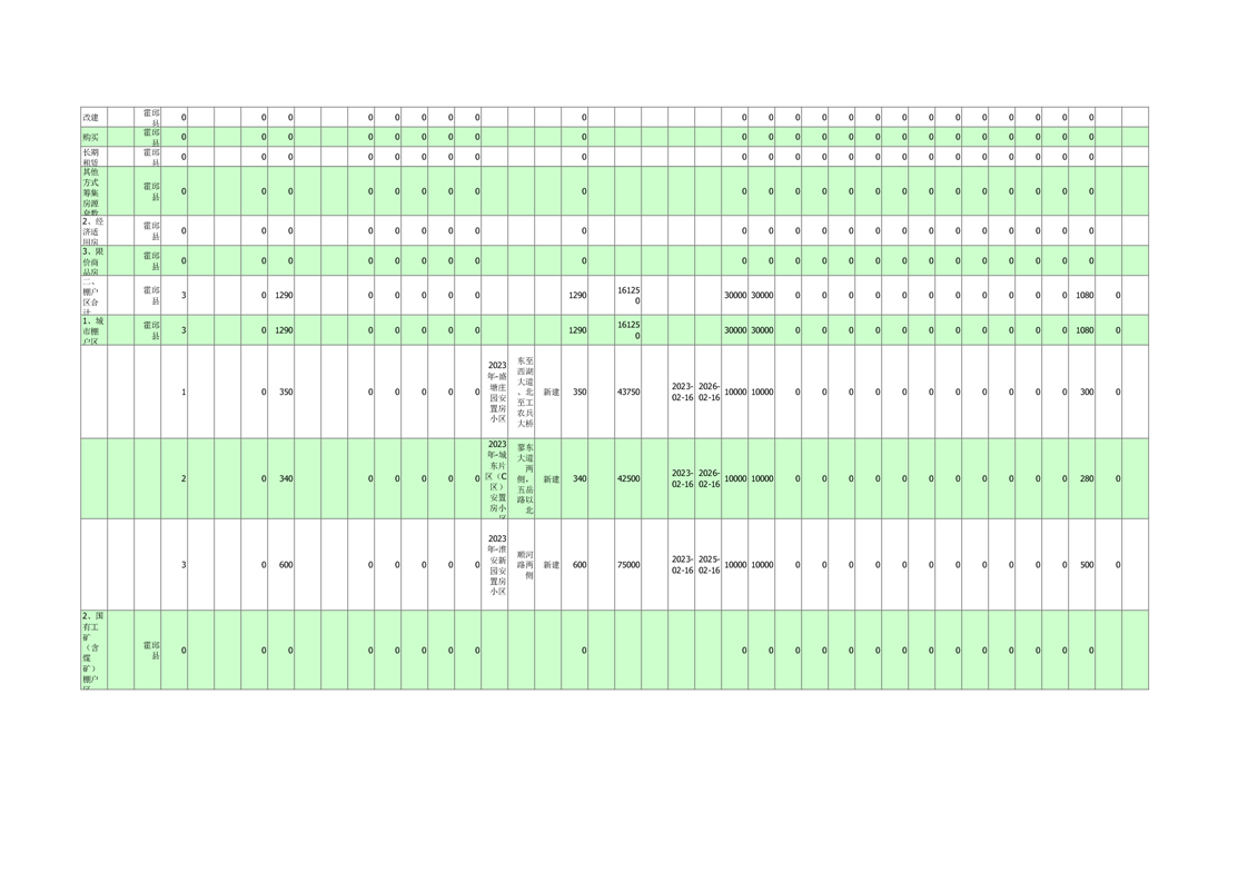 六安市2023年二季度保障性安居工程项目建设任务开工进展情况表