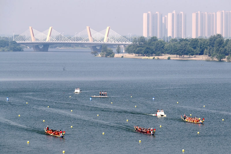 “咚、咚、咚……”5月25日上午,伴随着一阵阵铿锵有力的鼓声,六安市第十届龙舟赛在月亮岛水域正式拉开帷幕。