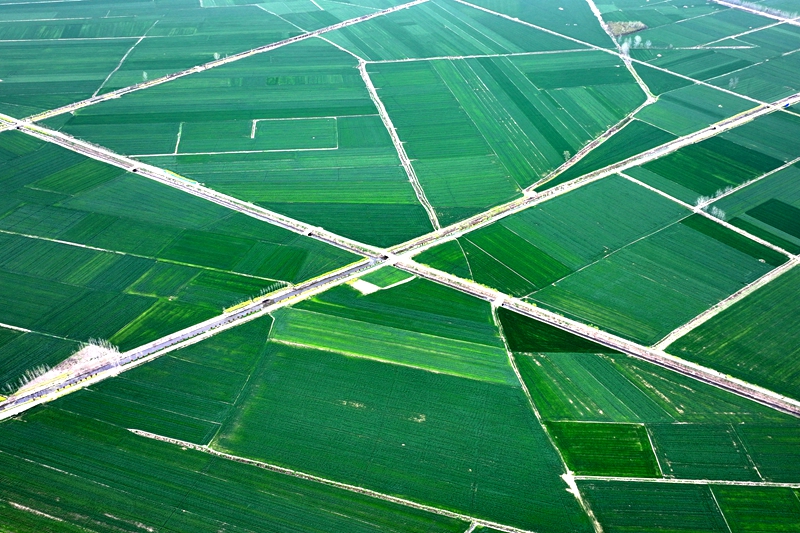3月28日,霍邱县城西湖乡万亩小麦示范区沐浴在明媚春光中,广袤的麦田绿浪翻滚,与蓝天白云相映成趣,勾勒出一幅生机盎然的乡村春日画卷(无人机拍摄)。