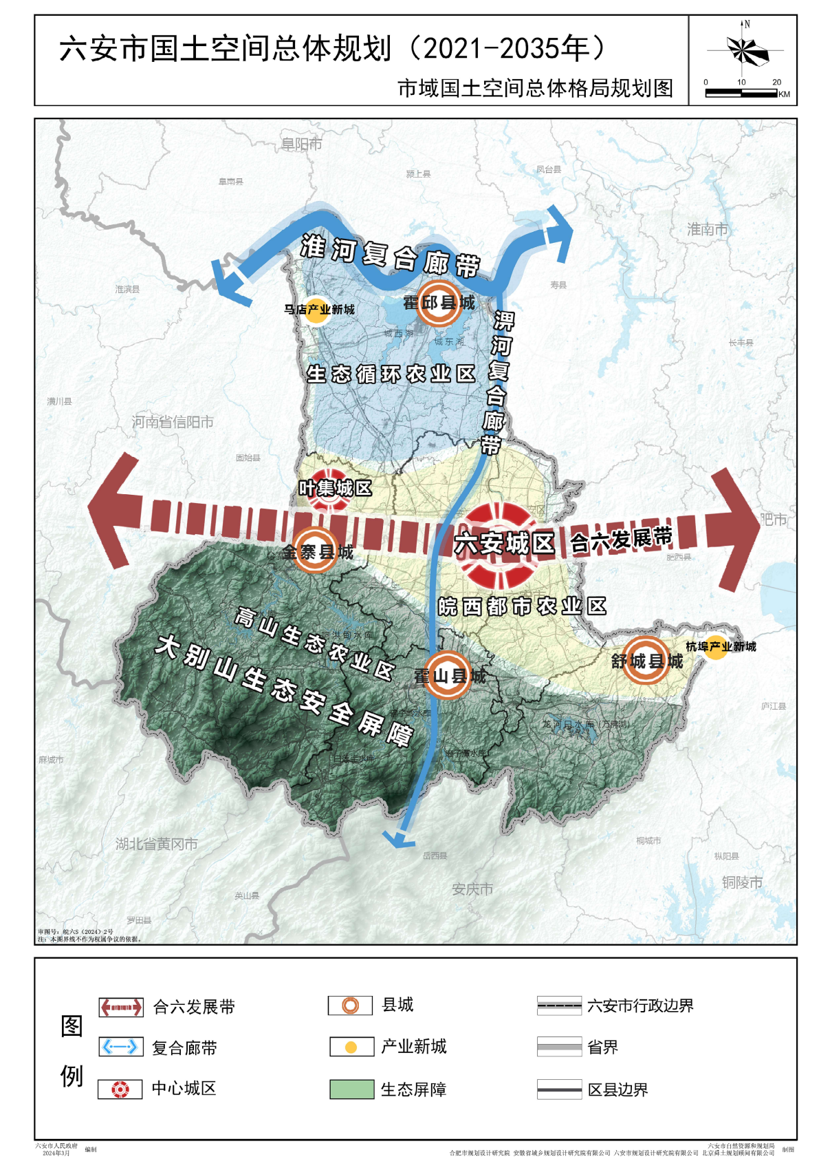 建立国土空间规划体系并监督实施,是党中央、国务院作出的重大部署。按照国家和安徽省工作要求,六安市人民政府组织编制了《六安市国土空间总体规划(2021—2035年)》(以下简称“本规划”)。本规划以习近平新时代中国特色社会主义思想为指导,全面贯彻落实党的二十大精神,认真落实习近平总书记关于安徽工作的重要讲话重要指示精神,紧扣落实打造“三地一区”战略定位、建设“七个强省”奋斗目标,全面落实国家、省级国土空间规划相关要求,对全市国土空间开发保护作出具体安排,具有综合性、战略性、协调性、基础性和约束性。全市各县和乡镇国土空间规划以及各类开发保护建设活动应当符合本规划。