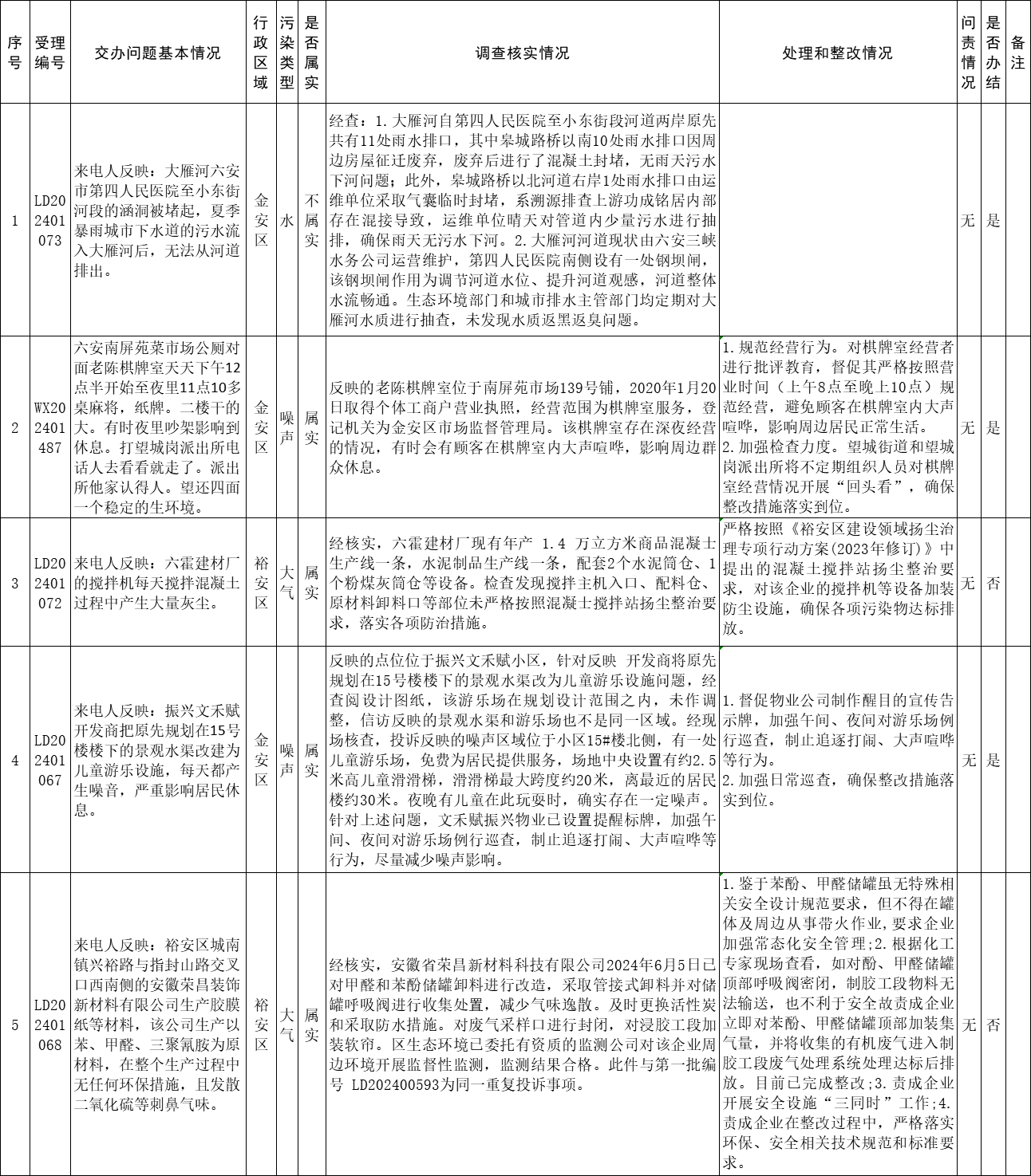 安徽省第二生态环境保护督察组6月28日(第二十六批)交办我市的6件信访件,截至7月4日,已办结3件。其中,经查属实5件,不属实1件,责令整改0件,立案处罚0件,拘留0人,问责0人,约谈0人。