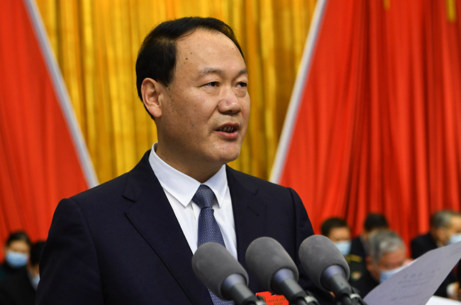 在热烈的掌声中,市长叶露中代表市人民政府向大会作政府工作报告。报告共分为三个部分:一、砥砺前行,决胜全面小康取得决定性成就;二、奋力拼搏,共同绘就“十四五”美好画卷;三、乘势而上,开启新阶段现代化幸福六安建设新征程。