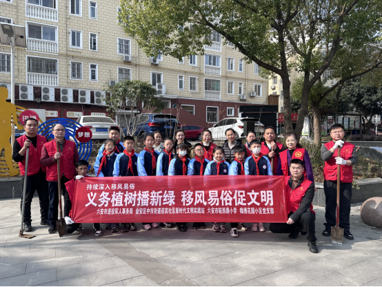 为迎接全国第61个学雷锋纪念日和第46个植树节,3月12日,市退役军人事务局联合结对共建社区——迎宾社区以及皖西路小学在锦绣花园小区开展“义务植树播新绿,移风易俗促文明”学雷锋主题志愿服务活动。