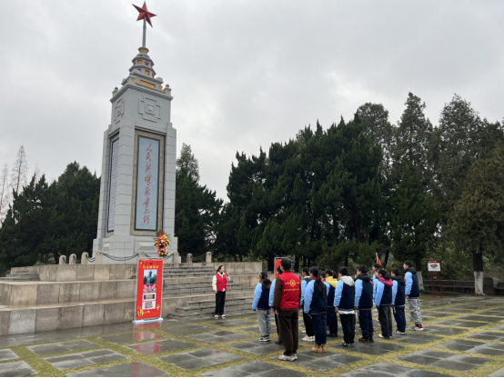 “同学们,我们所在的位置是全国爱国主义教育示范基地——皖西烈士陵园,我身后的这座烈士纪念碑始建于1957年,距今已有60多年的历史……”活动中,来自皖西烈士陵园管理处的红色宣讲员在革命烈士纪念碑前,向现场师生介绍皖西红色革命历史,讲述革命先辈们的英雄事迹。在许继慎烈士铜像前,大家详细了解这位中国工农红军早期杰出将领、军事家的生平事迹,聆听他的战斗故事。随后,大家高唱《中国少年先锋队队歌》,并向革命烈士纪念碑敬献花篮,向为中华民族伟大复兴作出不朽贡献的英雄们致以缅怀纪念。